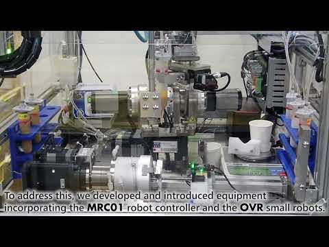 The OVR Series includes compact 4-, 5-, and 6-axis articulated robots. The 4-axis model delivers stable, precise horizontal transport with streamlined control via the MRC robot controller and AZ Series drivers.